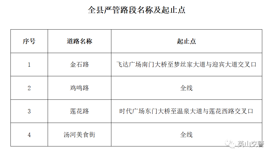 附件:英山縣嚴(yán)管路段名稱(chēng)及起止點(diǎn)