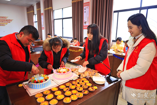 羅田縣青年志愿者與困難兒童一起吃蛋糕、吹蠟燭。通訊員 供圖