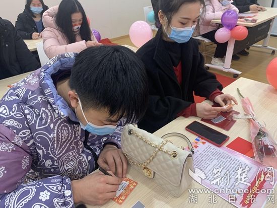 新人互送心愿卡,小小心愿卡蘊含著婚姻家庭的責(zé)任擔(dān)當(dāng)。通訊員供圖