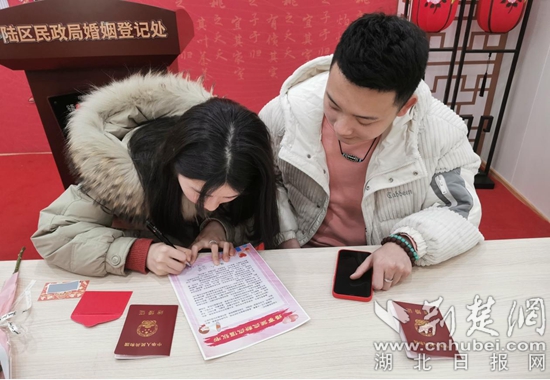 據(jù)了解,為應(yīng)對當(dāng)日可能出現(xiàn)的登記高峰,該區(qū)民政局婚姻登記處通過網(wǎng)上預(yù)約、提前審核,電話通知預(yù)約新人認(rèn)真遵守疫情防控要求,按時到場辦理登記;實時調(diào)控現(xiàn)場人數(shù),減少登記人員往來和聚集,確保符合條件的每對新人都能領(lǐng)到結(jié)婚證。