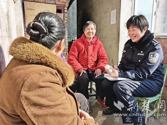 在鄂州市雷山社區(qū),民警胡敏結(jié)合“我為群眾辦實事”實踐活動,主動走訪轄區(qū)困難群眾。在走訪中,胡敏與群眾促膝長談,詳細詢問困難群眾生活狀況,叮囑他們今后生活中遇有問題,要及時給民警打電話,民警將盡最大努力幫助他們解決實際困難。