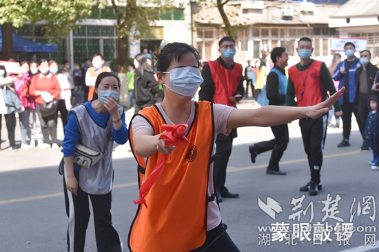 蒙眼敲鑼比賽。通訊員 供圖